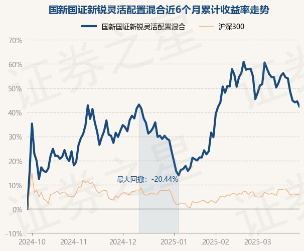 证券之星消息,3月27日,国新国证新锐灵活配置混合最新单位净值为1.391元,累计净值为1.391元,较前一交易日下跌1.49%。历史数据显示该基金近1个月下跌8.06%,近3个月上涨10.31%,近6个月上涨42.37%,近1年上涨26.57%。该基金近6个月的累计收益率走势如下图: