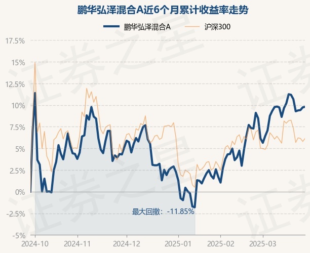 证券之星消息,3月27日,鹏华弘泽混合A最新单位净值为1.6376元,累计净值为1.6376元,较前一交易日上涨0.05%。历史数据显示该基金近1个月上涨1.22%,近3个月上涨6.84%,近6个月上涨9.8%,近1年上涨7.52%。该基金近6个月的累计收益率走势如下图: