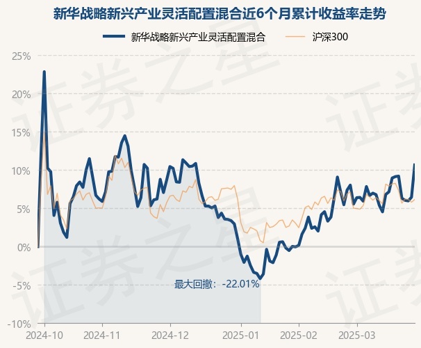证券之星消息,3月27日,新华战略新兴产业灵活配置混合最新单位净值为0.8957元,累计净值为0.8957元,较前一交易日上涨3.96%。历史数据显示该基金近1个月上涨2.44%,近3个月上涨7.04%,近6个月上涨10.66%,近1年下跌0.48%。该基金近6个月的累计收益率走势如下图: