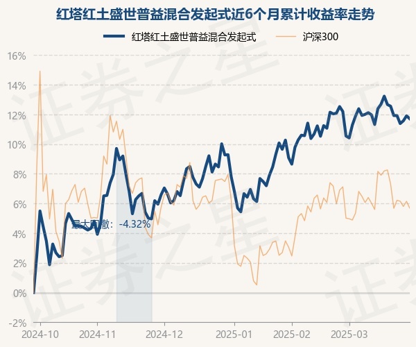 证券之星消息,3月27日,红塔红土盛世普益混合发起式最新单位净值为1.3873元,累计净值为2.0953元,较前一交易日上涨0.3%。历史数据显示该基金近1个月下跌0.26%,近3个月上涨2.41%,近6个月上涨11.91%,近1年上涨15.54%。该基金近6个月的累计收益率走势如下图: