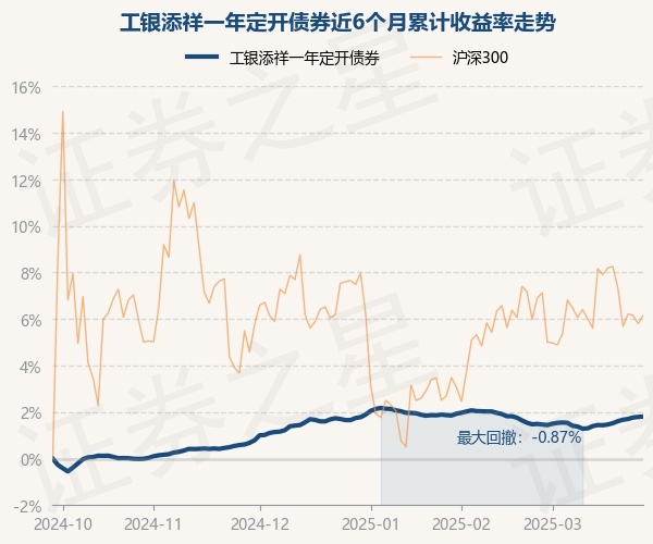证券之星消息,3月27日,工银添祥一年定开债券最新单位净值为1.2919元,累计净值为1.2919元,较前一交易日上涨0.02%。历史数据显示该基金近1个月上涨0.33%,近3个月上涨0.06%,近6个月上涨1.8%,近1年上涨3.84%。该基金近6个月的累计收益率走势如下图: