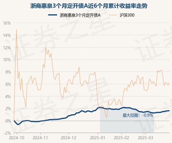 证券之星消息,3月27日,浙商惠泉3个月定开债A最新单位净值为1.0404元,累计净值为1.1483元,较前一交易日上涨0.0%。历史数据显示该基金近1个月上涨0.24%,近3个月下跌0.01%,近6个月上涨1.6%,近1年上涨3.64%。该基金近6个月的累计收益率走势如下图: