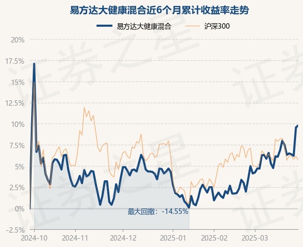 证券之星消息,3月27日,易方达大健康混合最新单位净值为1.891元,累计净值为1.891元,较前一交易日上涨3.16%。历史数据显示该基金近1个月上涨4.36%,近3个月上涨5.0%,近6个月上涨9.56%,近1年上涨5.64%。该基金近6个月的累计收益率走势如下图: