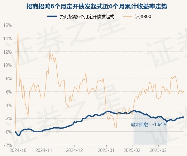 证券之星消息,3月27日,招商招鸿6个月定开债发起式最新单位净值为1.053元,累计净值为1.2765元,较前一交易日上涨0.0%。历史数据显示该基金近1个月上涨0.14%,近3个月下跌0.43%,近6个月上涨2.15%,近1年上涨3.94%。该基金近6个月的累计收益率走势如下图: