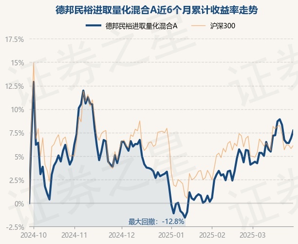 证券之星消息,3月27日,德邦民裕进取量化混合A最新单位净值为0.983元,累计净值为0.983元,较前一交易日上涨0.76%。历史数据显示该基金近1个月上涨2.02%,近3个月上涨4.46%,近6个月上涨7.73%,近1年上涨9.67%。该基金近6个月的累计收益率走势如下图: