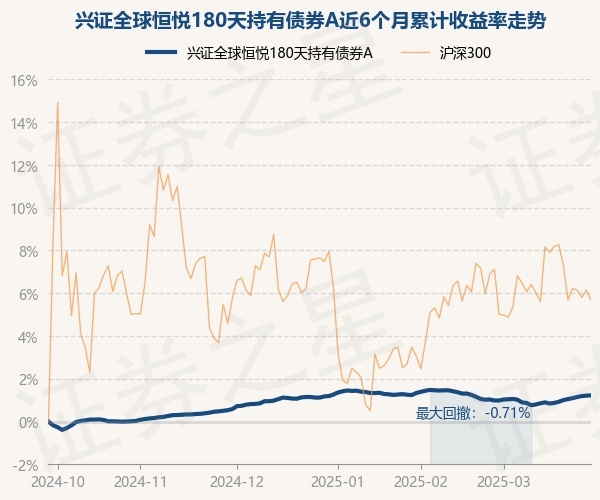 证券之星消息,3月27日,兴证全球恒悦180天持有债券A最新单位净值为1.1314元,累计净值为1.1314元,较前一交易日上涨0.02%。历史数据显示该基金近1个月上涨0.22%,近3个月上涨0.04%,近6个月上涨1.21%,近1年上涨2.82%。该基金近6个月的累计收益率走势如下图: