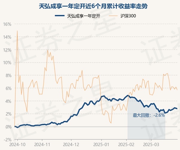 证券之星消息,3月27日,天弘成享一年定开最新单位净值为1.0783元,累计净值为1.1649元,较前一交易日下跌0.06%。历史数据显示该基金近1个月下跌0.17%,近3个月下跌1.09%,近6个月上涨2.84%,近1年上涨4.19%。该基金近6个月的累计收益率走势如下图: