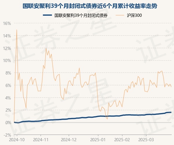 证券之星消息,3月27日,国联安聚利39个月封闭式债券最新单位净值为1.0115元,累计净值为1.0654元,较前一交易日上涨0.01%。历史数据显示该基金近1个月上涨0.43%,近3个月上涨0.74%,近6个月上涨1.59%,近1年上涨3.28%。该基金近6个月的累计收益率走势如下图: