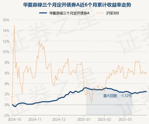 证券之星消息,3月27日,华夏鼎禄三个月定开债券A最新单位净值为1.035元,累计净值为1.2936元,较前一交易日上涨0.01%。历史数据显示该基金近1个月上涨0.15%,近3个月下跌0.13%,近6个月上涨2.45%,近1年上涨4.53%。该基金近6个月的累计收益率走势如下图: