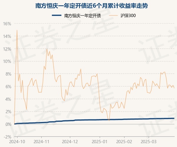证券之星消息,3月27日,南方恒庆一年定开债最新单位净值为1.0284元,累计净值为1.1111元,较前一交易日上涨0.0%。历史数据显示该基金近1个月上涨0.09%,近3个月上涨0.23%,近6个月上涨0.88%,近1年上涨2.05%。该基金近6个月的累计收益率走势如下图: