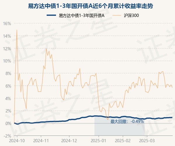 证券之星消息,3月27日,易方达中债1-3年国开债A最新单位净值为1.007元,累计净值为1.1847元,较前一交易日上涨0.0%。历史数据显示该基金近1个月上涨0.24%,近3个月下跌0.26%,近6个月上涨0.88%,近1年上涨2.45%。该基金近6个月的累计收益率走势如下图:
