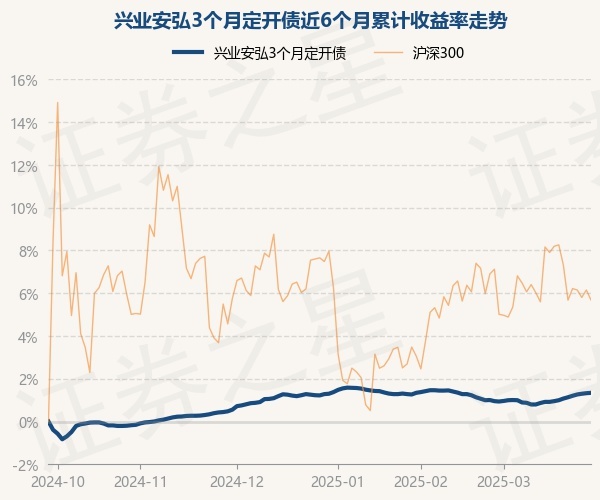 证券之星消息,3月27日,兴业安弘3个月定开债最新单位净值为1.1712元,累计净值为1.4044元,较前一交易日上涨0.03%。历史数据显示该基金近1个月上涨0.37%,近3个月上涨0.04%,近6个月上涨1.32%,近1年上涨2.4%。该基金近6个月的累计收益率走势如下图: