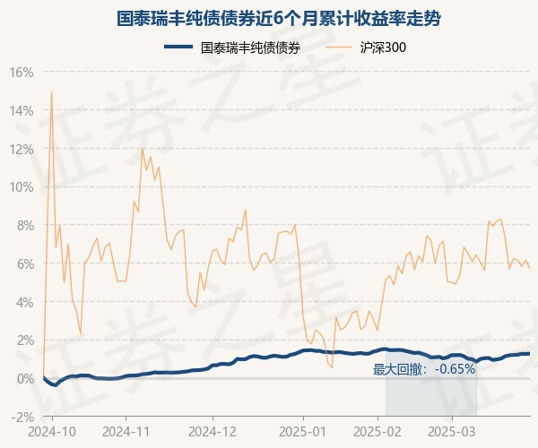 证券之星消息,3月27日,国泰瑞丰纯债债券最新单位净值为1.0054元,累计净值为1.0874元,较前一交易日下跌0.01%。历史数据显示该基金近1个月上涨0.23%,近3个月上涨0.04%,近6个月上涨1.24%,近1年上涨2.73%。该基金近6个月的累计收益率走势如下图: