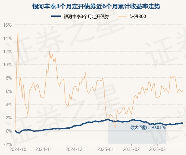 证券之星消息,3月27日,银河丰泰3个月定开债券最新单位净值为1.0351元,累计净值为1.2078元,较前一交易日下跌0.01%。历史数据显示该基金近1个月上涨0.19%,近3个月下跌0.33%,近6个月上涨1.13%,近1年上涨2.52%。该基金近6个月的累计收益率走势如下图: