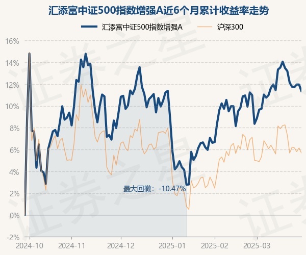 证券之星消息,3月28日,汇添富中证500指数增强A最新单位净值为1.6606元,累计净值为1.9256元,较前一交易日下跌0.53%。历史数据显示该基金近1个月上涨2.77%,近3个月上涨0.13%,近6个月上涨11.36%,近1年上涨17.32%。该基金近6个月的累计收益率走势如下图: