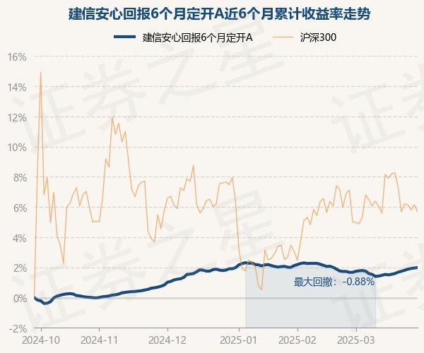 证券之星消息,3月28日,建信安心回报6个月定开A最新单位净值为1.0284元,累计净值为1.5769元,较前一交易日上涨0.03%。历史数据显示该基金近1个月上涨0.31%,近3个月上涨0.08%,近6个月上涨2.0%,近1年上涨3.96%。该基金近6个月的累计收益率走势如下图: