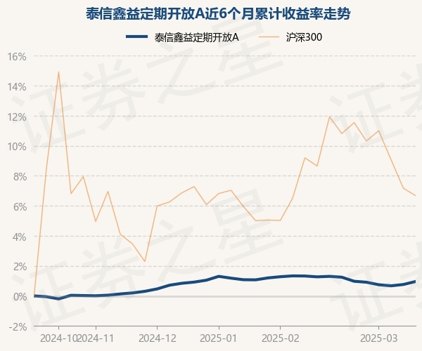 证券之星消息,3月28日,泰信鑫益定期开放A最新单位净值为1.2684元,累计净值为1.6104元,较前一交易日上涨0.2%。历史数据显示该基金近1个月上涨0.05%,近3个月上涨0.04%,近6个月上涨0.78%,近1年上涨2.19%。该基金近6个月的累计收益率走势如下图:
