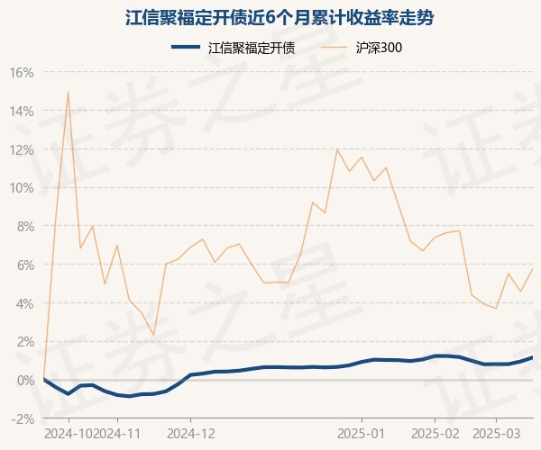 证券之星消息,3月28日,江信聚福定开债最新单位净值为1.3177元,累计净值为1.6577元,较前一交易日上涨0.21%。历史数据显示该基金近1个月上涨0.35%,近3个月上涨0.46%,近6个月上涨1.1%,近1年上涨4.08%。该基金近6个月的累计收益率走势如下图: