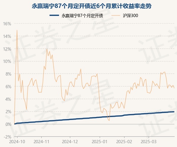 证券之星消息,3月28日,永赢瑞宁87个月定开债最新单位净值为1.0946元,累计净值为1.1866元,较前一交易日上涨0.01%。历史数据显示该基金近1个月上涨0.29%,近3个月上涨0.93%,近6个月上涨1.94%,近1年上涨3.95%。该基金近6个月的累计收益率走势如下图:
