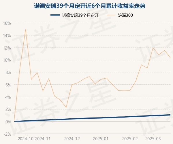 证券之星消息,3月28日,诺德安瑞39个月定开最新单位净值为1.032元,累计净值为1.137元,较前一交易日上涨0.04%。历史数据显示该基金近1个月上涨0.17%,近3个月上涨0.53%,近6个月上涨1.06%,近1年上涨2.16%。该基金近6个月的累计收益率走势如下图: