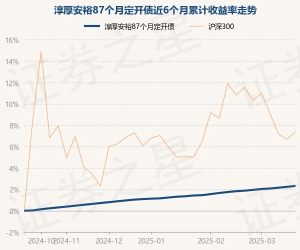 证券之星消息,3月28日,淳厚安裕87个月定开债最新单位净值为1.0454元,累计净值为1.1894元,较前一交易日上涨0.09%。历史数据显示该基金近1个月上涨0.31%,近3个月上涨1.0%,近6个月上涨2.05%,近1年上涨4.27%。该基金近6个月的累计收益率走势如下图: