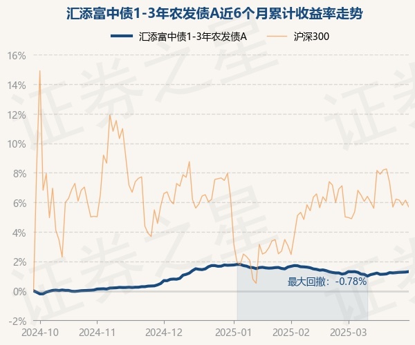证券之星消息,3月28日,汇添富中债1-3年农发债A最新单位净值为1.0366元,累计净值为1.1904元,较前一交易日上涨0.03%。历史数据显示该基金近1个月上涨0.13%,近3个月下跌0.44%,近6个月上涨1.3%,近1年上涨3.11%。该基金近6个月的累计收益率走势如下图: