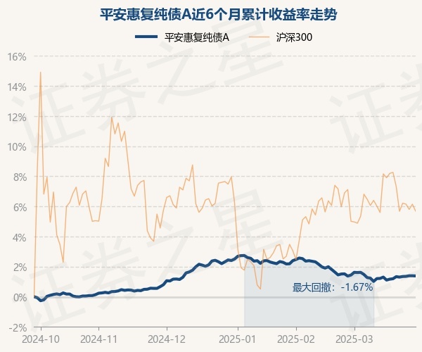 证券之星消息,3月28日,平安惠复纯债A最新单位净值为1.0321元,累计净值为1.2901元,较前一交易日下跌0.01%。历史数据显示该基金近1个月下跌0.06%,近3个月下跌1.04%,近6个月上涨1.39%,近1年上涨7.86%。该基金近6个月的累计收益率走势如下图: