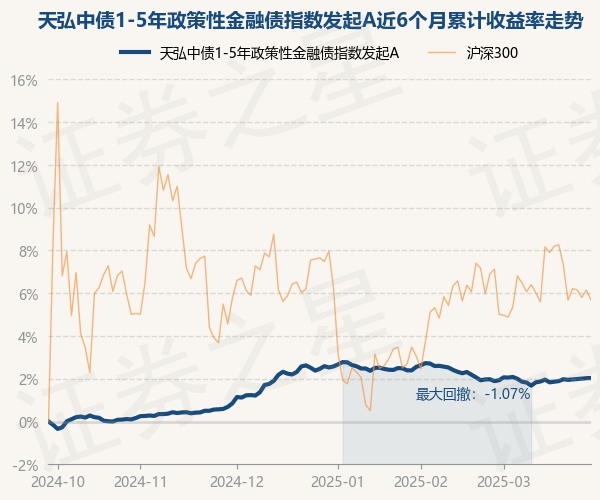 证券之星消息,3月28日,天弘中债1-5年政策性金融债指数发起A最新单位净值为1.0558元,累计净值为1.139元,较前一交易日上涨0.01%。历史数据显示该基金近1个月上涨0.1%,近3个月下跌0.54%,近6个月上涨2.03%,近1年上涨4.61%。该基金近6个月的累计收益率走势如下图: