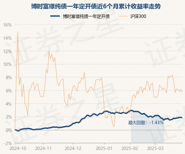 证券之星消息,3月28日,博时富璟纯债一年定开债最新单位净值为1.0266元,累计净值为1.1107元,较前一交易日下跌0.02%。历史数据显示该基金近1个月下跌0.17%,近3个月下跌0.6%,近6个月上涨1.86%,近1年上涨3.56%。该基金近6个月的累计收益率走势如下图: