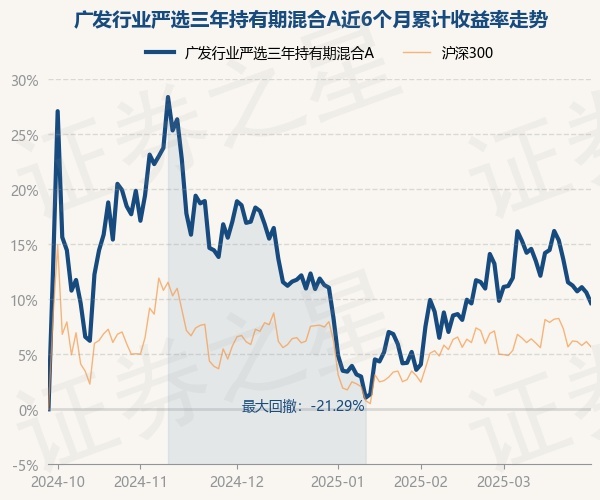 广发行业严选三年持有期混合A为混合型-偏股基金,根据最新一期基金季报显示,该基金资产配置:股票占净值比94.83%,债券占净值比1.89%,现金占净值比3.63%。基金十大重仓股如下: