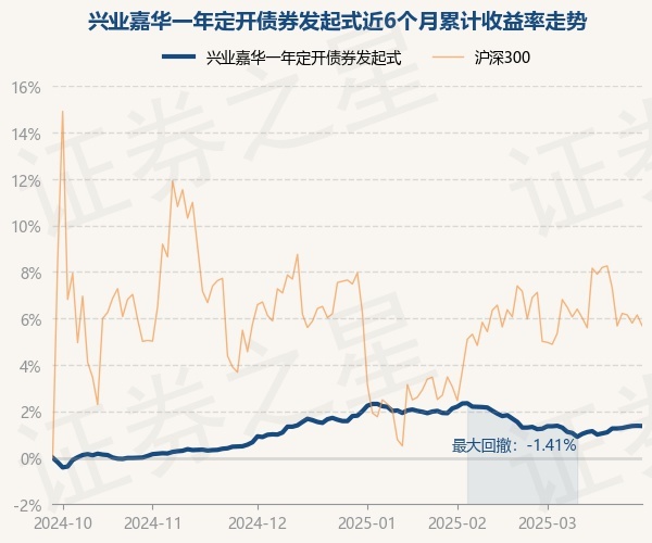 证券之星消息,3月28日,兴业嘉华一年定开债券发起式最新单位净值为1.0456元,累计净值为1.1926元,较前一交易日下跌0.01%。历史数据显示该基金近1个月上涨0.11%,近3个月下跌0.42%,近6个月上涨1.37%,近1年上涨5.05%。该基金近6个月的累计收益率走势如下图:
