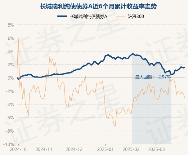 证券之星消息,3月31日,长城瑞利纯债债券A最新单位净值为1.0654元,累计净值为1.0928元,较前一交易日上涨0.11%。历史数据显示该基金近1个月下跌0.46%,近3个月下跌1.07%,近6个月上涨1.58%,近1年上涨3.36%。该基金近6个月的累计收益率走势如下图: