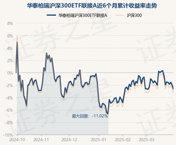证券之星消息,3月31日,华泰柏瑞沪深300ETF联接A最新单位净值为0.958元,累计净值为1.871元,较前一交易日下跌0.67%。历史数据显示该基金近1个月下跌0.04%,近3个月下跌0.94%,近6个月下跌2.63%,近1年上涨11.11%。该基金近6个月的累计收益率走势如下图: