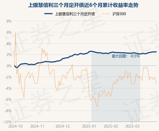 证券之星消息,3月31日,上银慧信利三个月定开债最新单位净值为1.0718元,累计净值为1.0918元,较前一交易日上涨0.03%。历史数据显示该基金近1个月上涨0.25%,近3个月上涨0.2%,近6个月上涨2.47%,近1年上涨4.01%。该基金近6个月的累计收益率走势如下图: