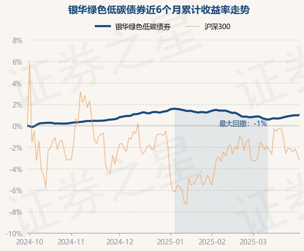 证券之星消息,3月31日,银华绿色低碳债券最新单位净值为1.0376元,累计净值为1.0606元,较前一交易日上涨0.03%。历史数据显示该基金近1个月上涨0.2%,近3个月下跌0.41%,近6个月上涨0.99%,近1年上涨2.36%。该基金近6个月的累计收益率走势如下图: