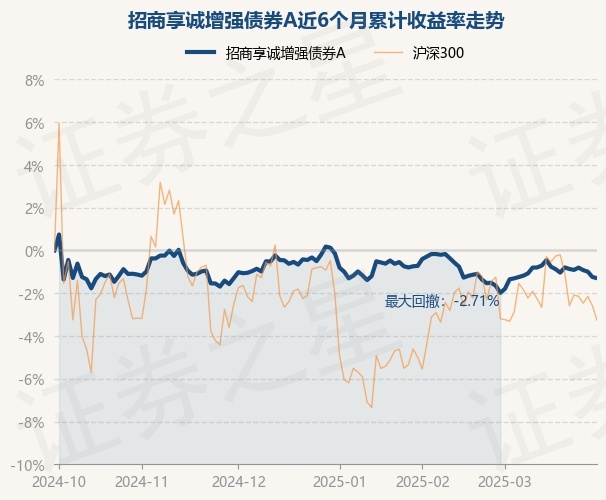 证券之星消息,3月31日,招商享诚增强债券A最新单位净值为1.1024元,累计净值为1.1024元,较前一交易日下跌0.05%。历史数据显示该基金近1个月上涨0.7%,近3个月下跌1.16%,近6个月下跌1.3%,近1年上涨2.92%。该基金近6个月的累计收益率走势如下图: