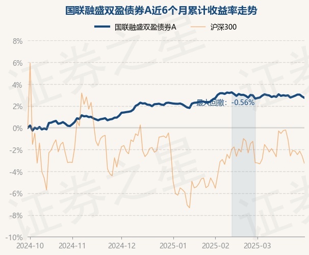 证券之星消息,3月31日,国联融盛双盈债券A最新单位净值为1.0842元,累计净值为1.0842元,较前一交易日下跌0.12%。历史数据显示该基金近1个月上涨0.07%,近3个月上涨0.47%,近6个月上涨2.74%,近1年上涨6.89%。该基金近6个月的累计收益率走势如下图: