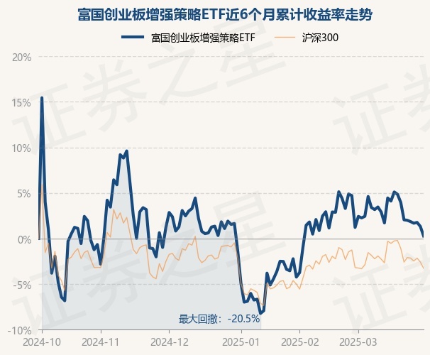 证券之星消息,3月31日,富国创业板增强策略ETF最新单位净值为0.9126元,累计净值为0.9126元,较前一交易日下跌1.03%。历史数据显示该基金近1个月下跌0.92%,近3个月上涨1.56%,近6个月上涨0.29%,近1年上涨19.5%。该基金近6个月的累计收益率走势如下图: