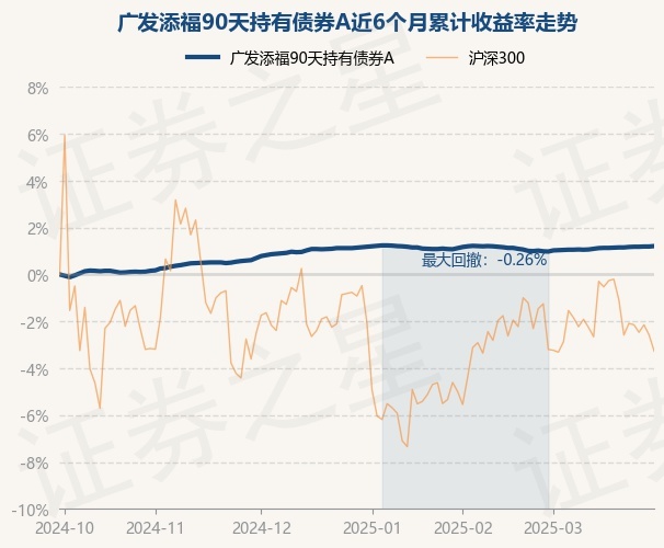 证券之星消息,3月31日,广发添福90天持有债券A最新单位净值为1.0462元,累计净值为1.0462元,较前一交易日上涨0.02%。历史数据显示该基金近1个月上涨0.23%,近3个月上涨0.03%,近6个月上涨1.21%,近1年上涨2.64%。该基金近6个月的累计收益率走势如下图:
