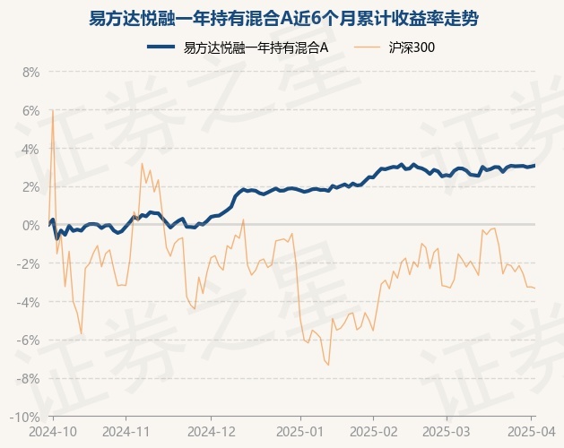 证券之星消息,3月31日,易方达悦融一年持有混合A最新单位净值为1.0571元,累计净值为1.0571元,较前一交易日上涨0.0%。历史数据显示该基金近1个月上涨0.47%,近3个月上涨1.12%,近6个月上涨2.98%,近1年上涨3.85%。该基金近6个月的累计收益率走势如下图: