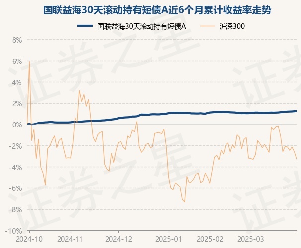 证券之星消息,3月31日,国联益海30天滚动持有短债A最新单位净值为1.0953元,累计净值为1.0953元,较前一交易日上涨0.02%。历史数据显示该基金近1个月上涨0.2%,近3个月上涨0.25%,近6个月上涨1.25%,近1年上涨2.83%。该基金近6个月的累计收益率走势如下图: