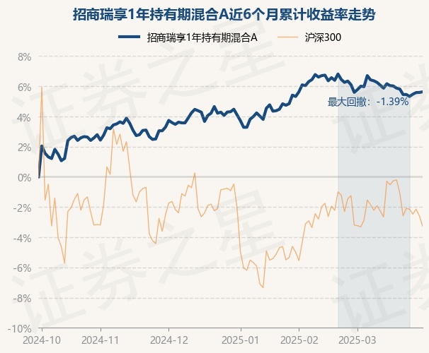 证券之星消息,3月31日,招商瑞享1年持有期混合A最新单位净值为1.0788元,累计净值为1.1077元,较前一交易日上涨0.04%。历史数据显示该基金近1个月上涨0.03%,近3个月上涨1.47%,近6个月上涨5.62%,近1年上涨9.92%。该基金近6个月的累计收益率走势如下图: