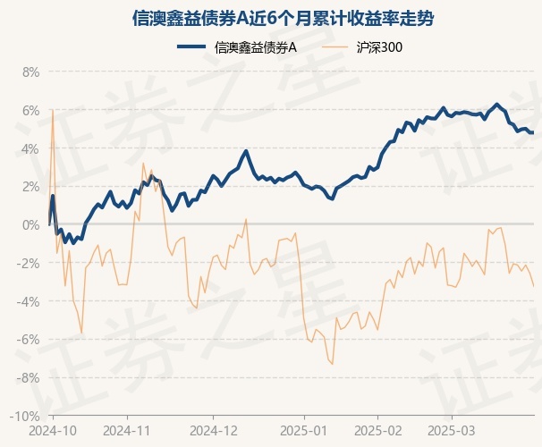 证券之星消息,3月31日,信澳鑫益债券A最新单位净值为1.0695元,累计净值为1.0695元,较前一交易日上涨0.0%。历史数据显示该基金近1个月下跌1.09%,近3个月上涨2.07%,近6个月上涨4.55%,近1年上涨9.1%。该基金近6个月的累计收益率走势如下图: