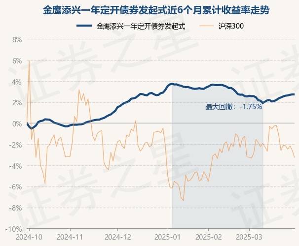 证券之星消息,3月31日,金鹰添兴一年定开债券发起式最新单位净值为1.0588元,累计净值为1.0588元,较前一交易日上涨0.0%。历史数据显示该基金近1个月上涨0.21%,近3个月下跌0.39%,近6个月上涨2.76%,近1年上涨3.61%。该基金近6个月的累计收益率走势如下图: