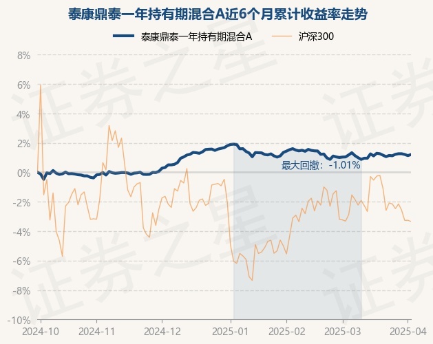 证券之星消息,3月31日,泰康鼎泰一年持有期混合A最新单位净值为1.0284元,累计净值为1.0284元,较前一交易日下跌0.05%。历史数据显示该基金近1个月上涨0.2%,近3个月下跌0.58%,近6个月上涨1.21%,近1年上涨2.99%。该基金近6个月的累计收益率走势如下图: