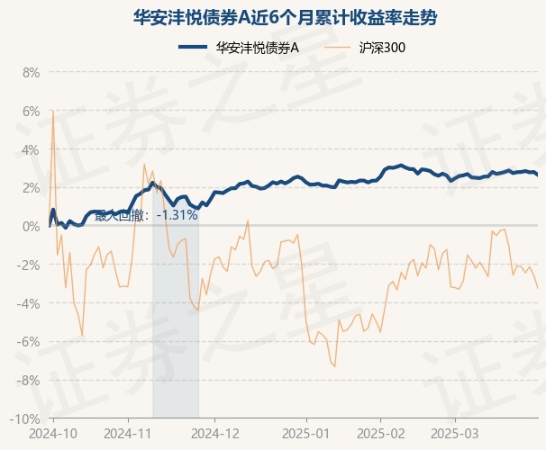 证券之星消息,3月31日,华安沣悦债券A最新单位净值为1.0587元,累计净值为1.0587元,较前一交易日下跌0.14%。历史数据显示该基金近1个月上涨0.31%,近3个月上涨0.18%,近6个月上涨2.63%,近1年上涨4.27%。该基金近6个月的累计收益率走势如下图: