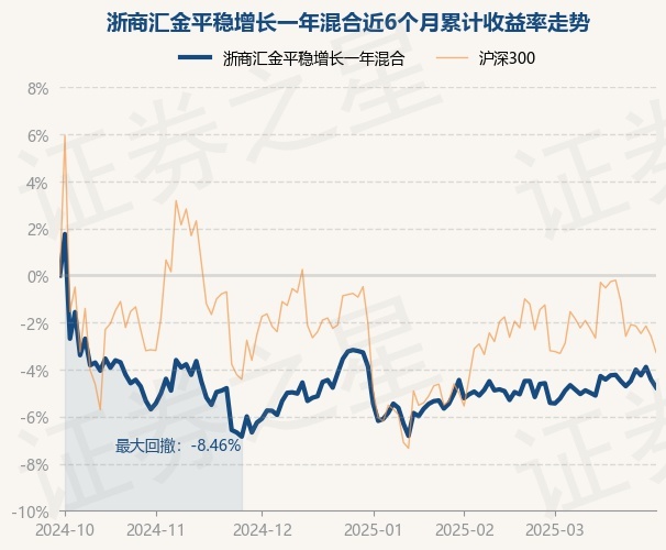 证券之星消息,3月31日,浙商汇金平稳增长一年混合最新单位净值为0.9105元,累计净值为2.4363元,较前一交易日下跌0.35%。历史数据显示该基金近1个月上涨0.7%,近3个月下跌0.91%,近6个月下跌4.76%,近1年上涨1.25%。该基金近6个月的累计收益率走势如下图: