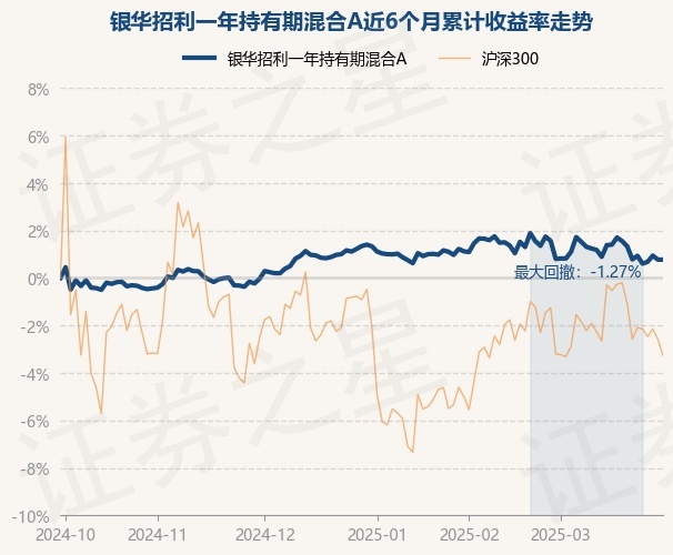 证券之星消息,3月31日,银华招利一年持有期混合A最新单位净值为1.0042元,累计净值为1.0042元,较前一交易日上涨0.0%。历史数据显示该基金近1个月下跌0.29%,近3个月下跌0.81%,近6个月上涨0.51%,近1年上涨1.99%。该基金近6个月的累计收益率走势如下图: