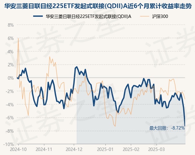 证券之星消息,3月31日,华安三菱日联日经225ETF发起式联接(QDII)A最新单位净值为0.8884元,累计净值为0.8884元,较前一交易日下跌2.77%。历史数据显示该基金近1个月下跌3.4%,近3个月下跌6.02%,近6个月下跌7.24%,近1年下跌11.65%。该基金近6个月的累计收益率走势如下图: