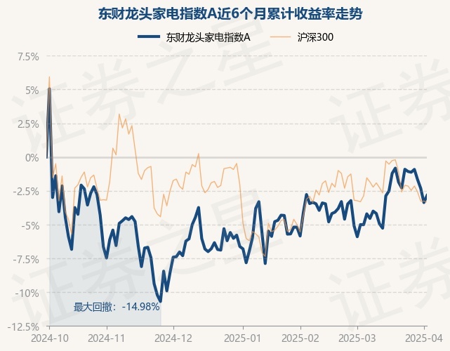 证券之星消息,3月31日,东财龙头家电指数A最新单位净值为1.0661元,累计净值为1.0661元,较前一交易日下跌0.66%。历史数据显示该基金近1个月上涨2.93%,近3个月上涨4.61%,近6个月下跌2.32%,近1年上涨19.52%。该基金近6个月的累计收益率走势如下图: